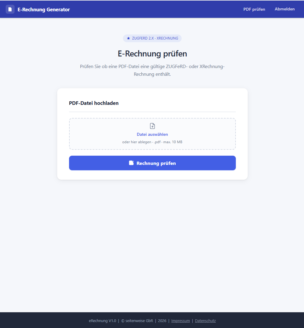 Die zu prüfende Rechnung als PDF hochladen — max. 10 MB.